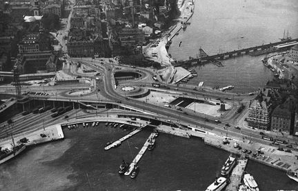 Flygbild över Slussen mot väster