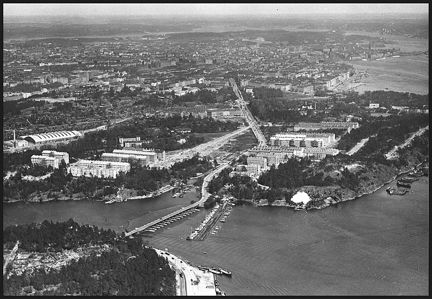Flygbild över Tranebergssund, Kristineberg och Fredhäll. Mot nordost