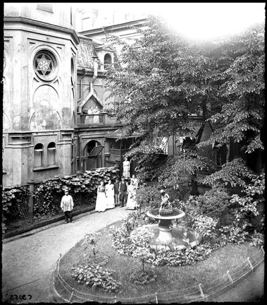 Gårdsinteriör och personal vid Malmtorgsbadet, Malmtorgsgatan 3