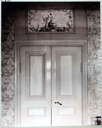 Interiör med dörr och målat dörröverstycke, Adolf Fredriks torg 1