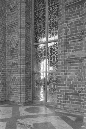 Stadshuset. Snäckgången, detalj av fönsterdörr mot Gyllene salen