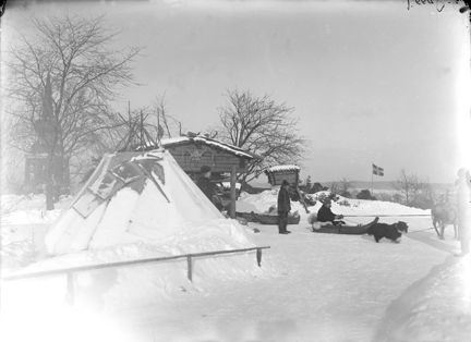 Vintermotiv från Skansen. Lappkåtan vid Håsjöstapeln