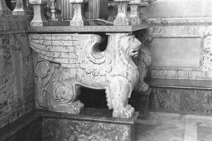 Stadshuset. Blå Hallen, figurativt stöd till trappans talarstol