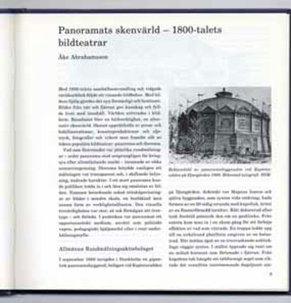 De första rundmålningarna visades på 1820-talet i Europa. 1800-talet var en tid när suget efter bilder var mycket stort. Man hörde talas om främmande platser och ville gärna se avbildningar av dessa. Att vara omgiven av en stor rundmålning kunde säkert ge en känsla av att befinna sig mitt i sceneriet! På 1800-talet upptäcktes fotografikonsten och därmed kunde man dokumentera främmande miljöer på ett nytt sätt. 11 sidor. Illustrerad.