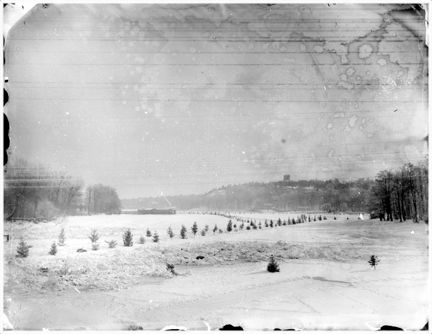Skridskobana på Djurgårdsbrunnsviken sett från Djurgårdsbron. I bakgrunden Bredablick på Skansen