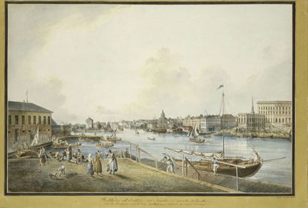 Åren 1784-87 gjorde Johan Fredrik Martin flera resor i Sverige för att teckna utsikter. 1797 utgav han samlingen Utsigter öfver Stockholm, utförda med etsade konturer, vilka han sedan färglade med akvarell. Dessa sålde han flitigt.