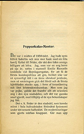 "Pepparkaksmoster" är ett kapitel ur Adolf Hellanders bok Stockholmstyper, en samling texter om de original man kunde se i Stockholm på 1800-talet. 8 sidor.