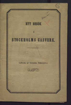 I denna skrift beskrivs hur man förvandlade gas till ljuskälla på 1800-talet. Tekniken hämtade man från Storbritannien. Staden hade redan 1824 erbjudits av en engelsk gasfirma att få hjälp med att anlägga ett gasverk. Men det blev inte verklighet förrän 1849, då beslutet togs av stadens styrande. 27 sidor.