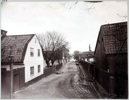 Barnängstvärgatan sedd från Tullgårdsgränd. Tullgårdsgränd kallas nu Ljusterögatan