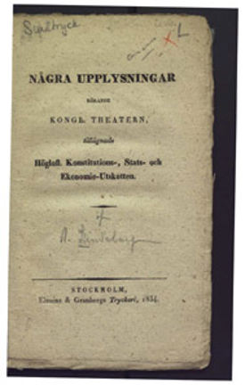 Denna skrift är författad av Anders Lindeberg på 1830-talet. Det är skrivet som ett protestbrev. Han var arg på kungen för att han inte fick starta en teater. Det var nämligen så att man var tvungen att ansöka om tillstånd för att starta en teater.