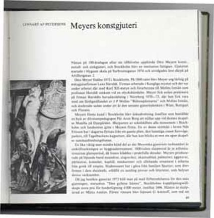 Här visas i en serie foton hur gjutningsprocessen på Meyers konstgjuteri gick till. Firman startade på 1870-talet av Otto Meyer. Man gjöt pampiga statyer, men tillverkade också olika mindre ornament i metall till husfasadernas utsmyckning. 8 sidor.