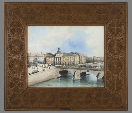Anna Palm (1859-1924) har detaljrikt skildrat operan strax före rivningen. Vi ser folklivet på torget utanför och hästskjutsar och hästspårvagnar som cirkulerar mellan Gamla stan och Norrmalm.