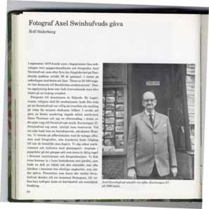 Axel Swinhufvud började arbeta som fotograf på 1910-talet. Bland annat hade han som uppgift att fotografera alla bränder i staden! Han hade också en fotoaffär på Karlavägen. När han dog hamnade hans stora fotosamling på stadsmuseet. Läs vidare om hans liv och titta på de unika bilderna från samlingen. 14 sidor.