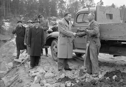 Prins Bertil besöker byggandet av Stora Skuggans skjutbana