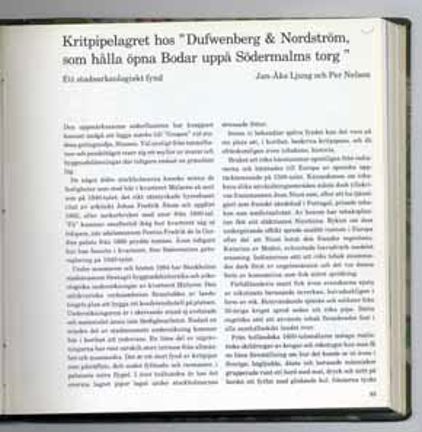 Kritpipelagret hos "Dufwenberg & Nordström, som hålla öpna Bodar uppå Södermalms torg" : ett stadsarkeologiskt fynd / Jan-Åke Ljung och Per Nelson