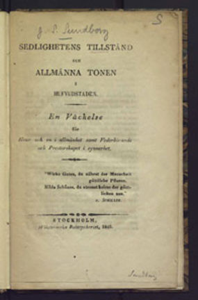 Sedlighetens tillstånd och allmänna tonen i hufvudstaden : en väckelse för hvar och en i allmänhet samt vederbörande och presterskapet i synnerhet