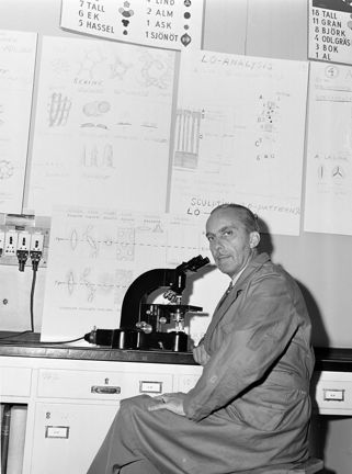Porträtt av Dr. Gunnar Erdtman i sitt Palynologiska laboratorium