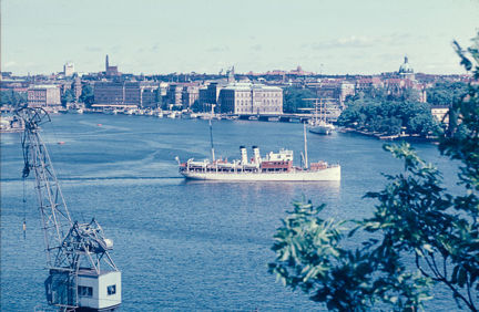 Utsikt från Katarinavägen norrut mot Blasieholmen. Ångbåten Bore I (Bore Lines) på väg mot Helsingfors