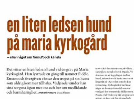 En liten ledsen hund på Maria kyrkogård - eller något om förnuft och känsla / artikelförfattare: Hans Öjmyr
