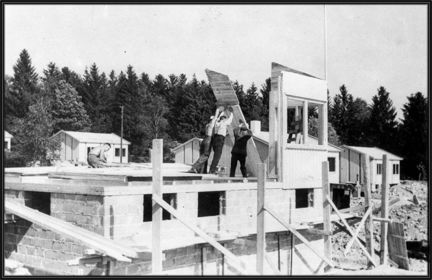 Väggarna reses - stomresning till hus i kvarteret Viktdosan 8 i Ängbys småstugeområde