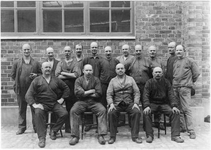 De flintskalligas klubb vid Spårvägens vagnhall i Råsunda 1920