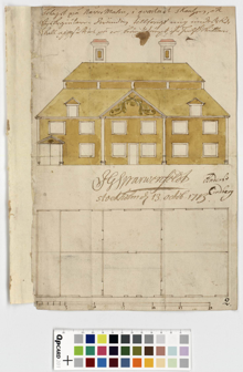 Här är en motsvarighet till bygglovsritning från 1713. Ritningen har lämnats in till Stockholms stad av en kommissarie Wattrang. Han vill uppföra ett stenhus vid Bastugatan på Södermalm. På ritningen avbildas både husets framsida (fasad) och en planritning över husets insida. Ritningen är utförd av Jonas Nilson.
