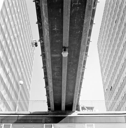 Gångbro över Sergelgatan sedd underifrån