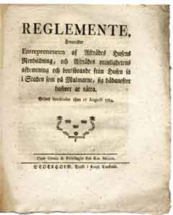 Detta reglemente (en samling regler) från överståthållarämbetet handlar om hur renhållningen av stadens avträden (dass, latrin) ska gå till. Det är mycket detaljerat skrivet. Exempelvis är det latrinägarens skyldighet att själv anmäla när den behöver tömmas. Entreprenören (ett företag som åtar sig att utföra ett arbete mot betalning) har skyldighet att utföra arbetet snabbt och ordentligt.