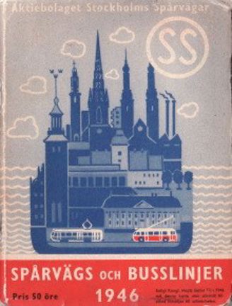 Kartan visar spårväglinjer och busslinjer i Stockholms innerstad, 1946.