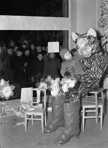 Trängsel på busshållplats 1953. Okänd fotograf, Spårvägsmuseet. Ungdomar tittar på en lejonunge på Konserthuset 1959. Foto: John Kjellström, Stadsmuseet i Stockholm