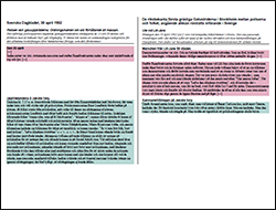 Utsnitt ur texterna finns renskrivna och sammanställda som pdf så att de olika källornas beskrivningar av händelserna kan läsas parallellt.