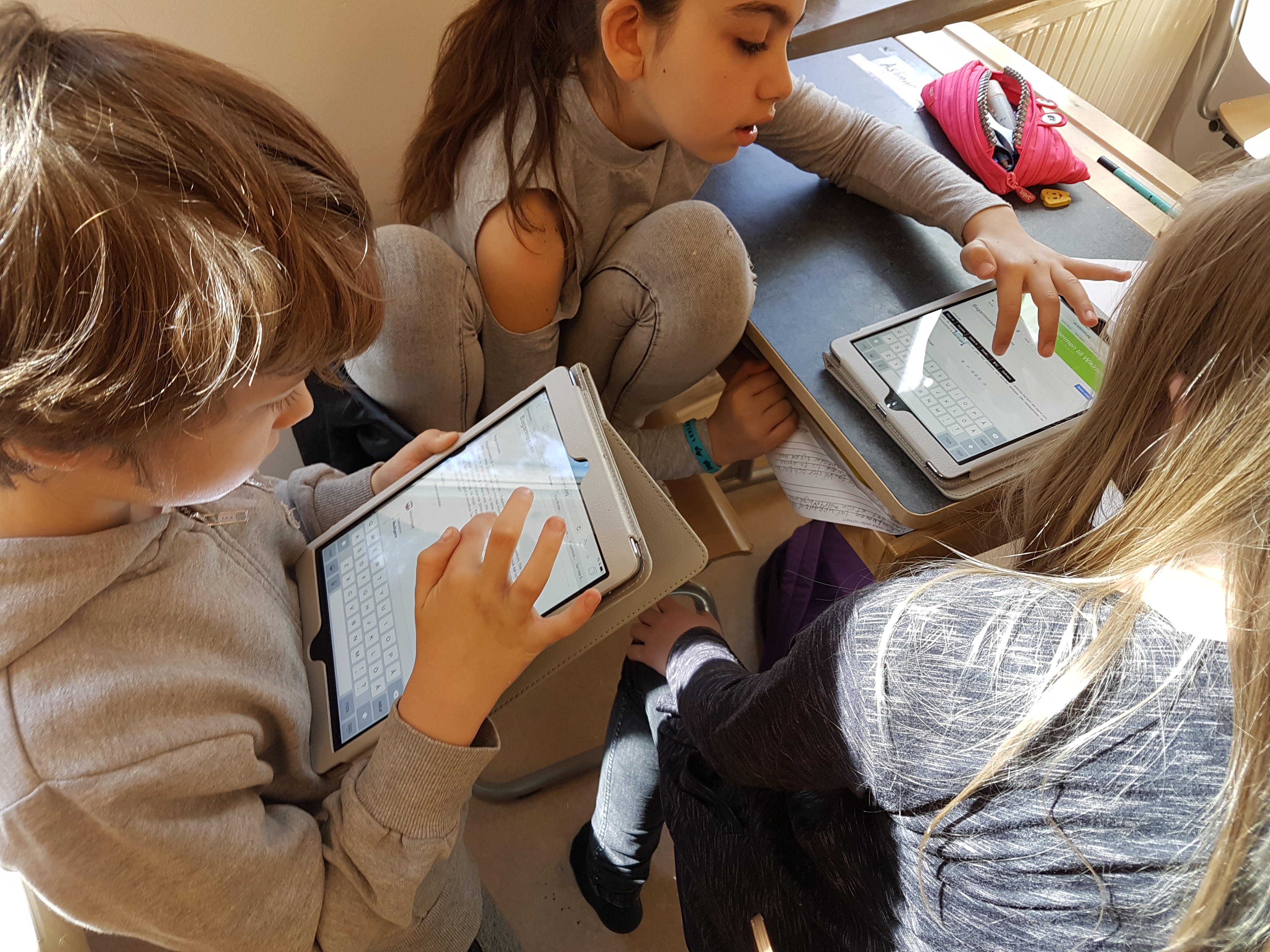 Elever i årskurs 4, Bagarmossens skola, arbetar med Wikimini och läser varandras texter. Foto: Sara Mörtsell, Wikimedia Sverige