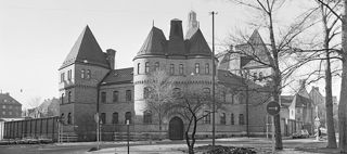 byggdes samtidigt, jag tror det var 1928, i slutet av 20-talet i alla fall. Då byggdes de här husen, det här kvarteret. Ovanpå här var det berg, så när min pappa var liten, berättade han, så stod han här och tittade över till det området mittemot" - Kajsa pekar ut mot fönstret - "som då var ett fängelse."