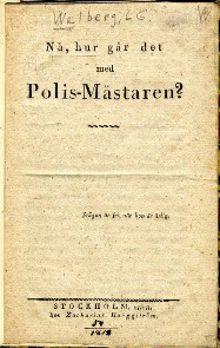 1818 blir polismästare Olof Wannqvist anklagad för att ha torterat fångar som polisen arresterat. Det är en ung skribent som heter Carl Gustaf Walberg som anklagar polisen för att ha begått övergreppen. Carl Gustaf Walberg trycker en liten skrift där tre drängar berättar om hur de blev oskyldigt arresterade och utsatta för polisens våld, bland annat i form av spöstraff.