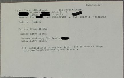 I ansökningshandlingarna där föräldrarna bad att deras barn skulle tas emot på barnhemmet, står ibland att barnen är "evangeliska" - det vill säga att de är kristna - eller om någon av föräldrarna är "arier". Nazisterna gjorde skillnad på "heljudar" och "halvjudar", och spår av det syns i ansökningarna.