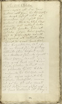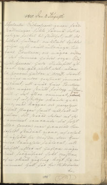 "Han satte sig upp på en häst, och red längs fronten. Knappt hade han likwäl ridit ett stycke, förrän hatten föll af honom, och några ögonblick derefter störtade han sielf sanslös af hästen, träffad af ett slaganfall."